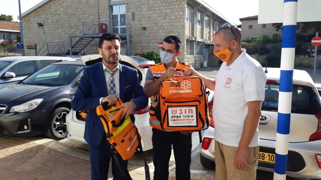 הרב שמעון לוגסי העניק הערב תיק חובש הכולל ציוד החייאה מלא וכן מכשיר דפיברילטור למתנדב היקר אוהד בניטה שנתרם ע״י משפחת גרוס .