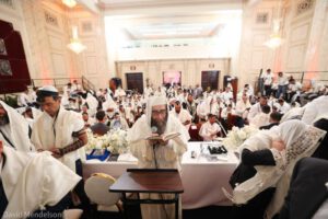 למעלה מתשע שעות נמשכה שמחת הנחת התפילין לבנו של האדמו"ר רבי יאשיהו פינטו, ראש אבות בתי הדין במרוקו, שהתקיימה במרכז העולמי של 'שובה ישראל' במנהטן.